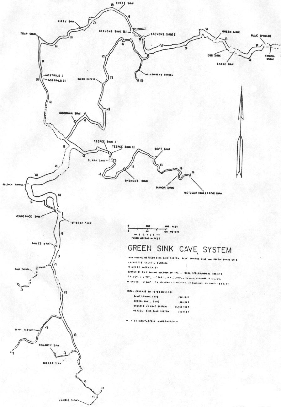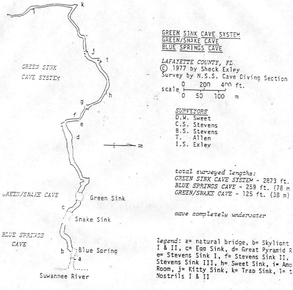 There is a 30x12 foot natural limestone bridge that you can (depending on river level) walk over or swim under similar to that of the small bridge at Telford. The 35 foot deep pool usually has a greenish tint. The Bl;ue Springs has three sides with steep bluffs and a wooden stairway on either side. To get to Snake sink turn to the right and walk through the opening in the fence as you just enter the park. The sink itself bend a bit at a right angle, hence the name. Green sink is more traditionally oval shaped and can be reached by following the path from Snake Sink.